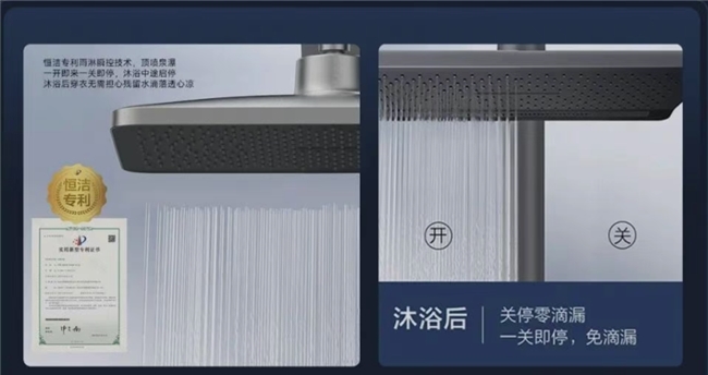 顶喷还设计了瞬停止水功能,关闭后水滴会立刻止住,沐浴中途起身拿取沐浴露或者更换衣物时,完全不用担心被冷水 “偷袭”,让整个沐浴过程都舒适又省心。